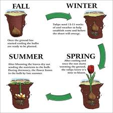 Essentially therefore in early spring at least in the northern hemisphere while you would normally plant tulip bulbs in the fall september october or november the usual growth cycle for a tulip is to produce roots in the fall in cool soil and grow under the snow all winter to be ready to bloom early in the spring. Tulips in pots or containers going outside and aftercare once early spring comes around your tulips will start peeking above the surface. According to the cornell study done over a six year period you should plant tulips late in the season this way. However do not plant bulbs any sooner than mid april since the weather will likely be too cold at this time.