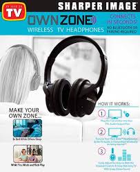 Item 7 as seen on tv sharper image own zone wireless tv headphones black new open box 7 as seen on tv sharper image own zone wireless tv headphones black new open box. As featured on tv. Electronics go search hello select your address. Troubleshooting i followed these steps but i still don t hear anything from my headphones.