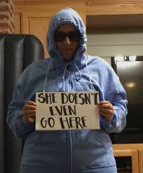 Inspired designs on t shirts posters stickers home decor and more by independent artists and designers from around the world. She doesn t even go here shirts apparel posters are available at mycrazyfunnyshirts. She doesn t even go here ladies t shirt. Funny easy halloween costume.