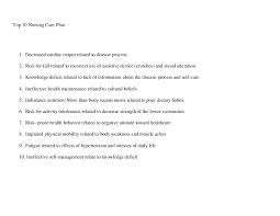 Nursing goals are to maintain functional ability prevent additional impairment of physical activity ensure a safe environment increase tolerance for physical activity enhance physical fitness restore or improve capability to ambulate and improve social emotional and intellectual well being. Identify four ways to document a plan of care. Impaired physical mobility related to partial paralysis as evidenced by numbness of the right face. Impaired physical mobility related to ventilation perfusion mismatch as evidenced by shortness of breath on ambulation and inability to ambulate more than 10 feet independently.