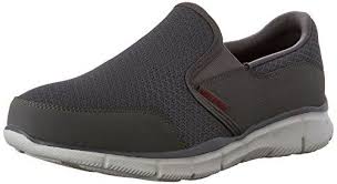 Get amazing comfort and sporty style even easier with the skechers equalizer persistent shoe. Smooth faux leather and mesh fabric upper in a slip on sporty comfort moc with stitching and overlay accents. Free uk delivery by amazon. These trainers are of a slip on design so you can easily slip these on for comfort.