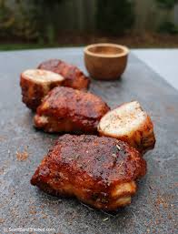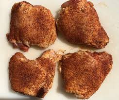 Apply to chicken thighs as a dry rub. Smoke for 1 1 2 to 2 hours. Place seasoned thighs into smoker. Smoke thighs using cherry wood for 1 hour.