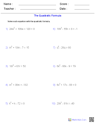 Solving quadratic equations by factoring date period solve each equation by factoring. 4x2 17x 15 11. Decompose the constant term 24 into two factors such that the product of the two factors is equal to 24 and the addition of two factors is equal to the coefficient of x that is 5. Quadratic formula worksheet real solutions quadratic formula worksheet complex solutions.