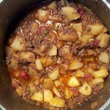 Pour beef stock canned tomatoes and tomato sauce over fideo and meat mixture.